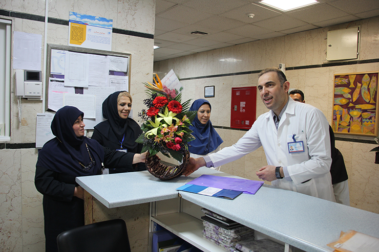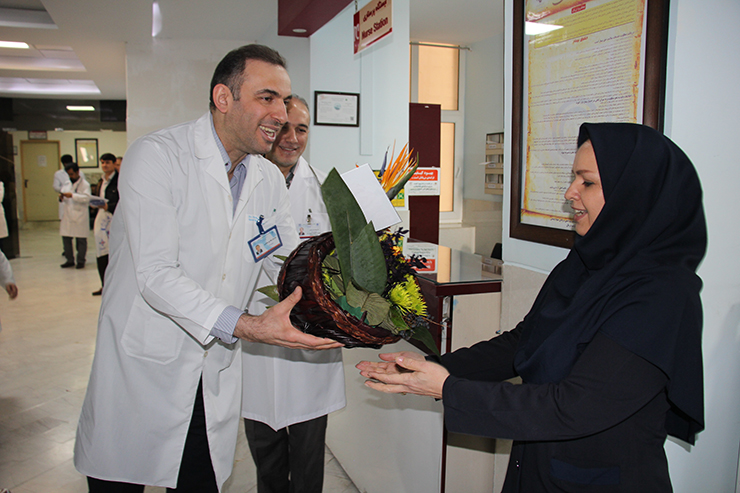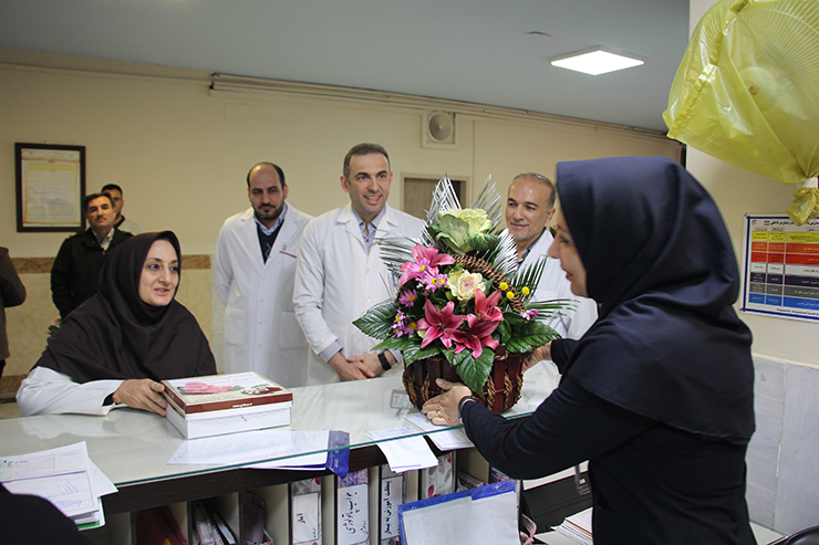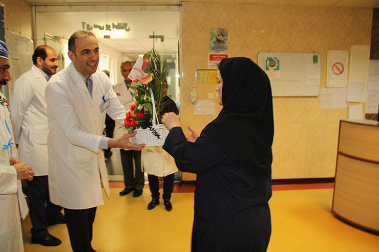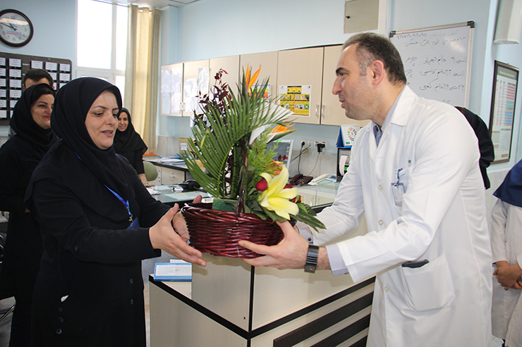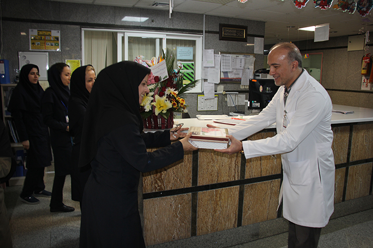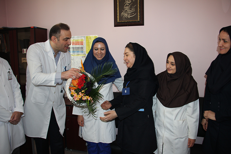 روابط عمومی مرکز: روز شنبه 22 دی ماه، آقای دکتر ملک پور، رئیس محترم مرکز به همراه مدیریت محترم مرکز و معاونین محترم آموزش و درمان و مدیریت محترم خدمات پرستاری در بخش های بالینی حضور یافتند و با اهدای گل و شیرینی، روز پرستار را گرامی داشتند.