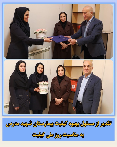 تقدیر از مسئول بهبود کیفیت بیمارستان شهید مدرس به مناسبت روز ملی کیفیت